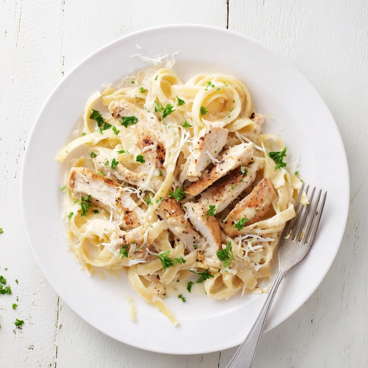 Experience the ultimate comfort food with tender slices of pan-seared chicken breast tossed perfectly with al dente fettuccine in a velvety homemade Alfredo sauce. The sauce comes together with heavy cream, butter, garlic, and freshly grated Parmesan, creating that luxurious Italian-American classic everyone loves.