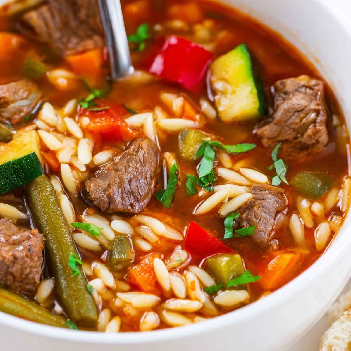 - Red bell pepper: Adds a sweetness that balances the beef without making the soup taste like marinara