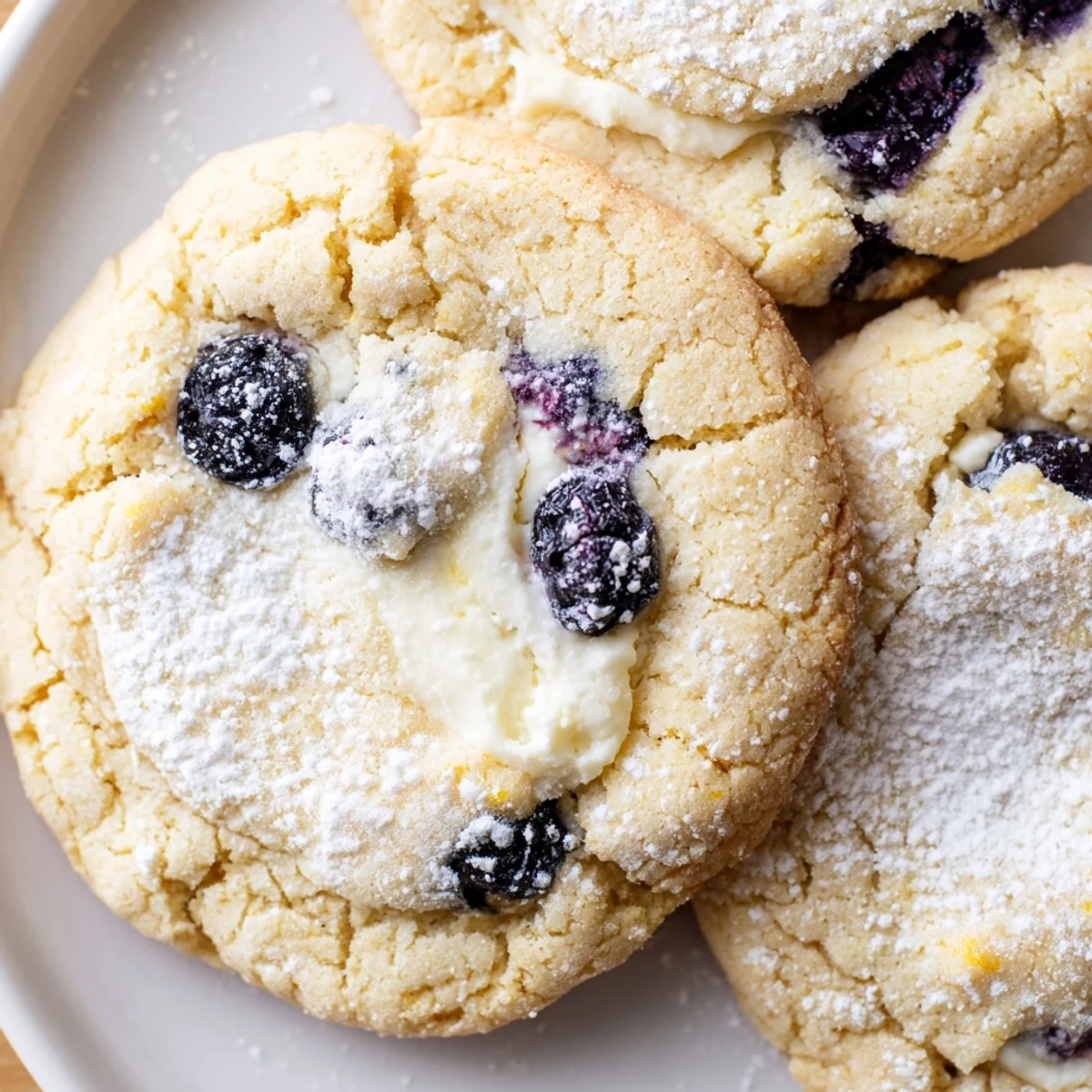 These soft, chewy treats combine the best of both worlds — buttery cookie dough wrapped around a creamy cheesecake center, loaded with plump blueberries and bright lemon zest. Each bite delivers tangy creaminess balanced by sweet fruit and citrus zing.