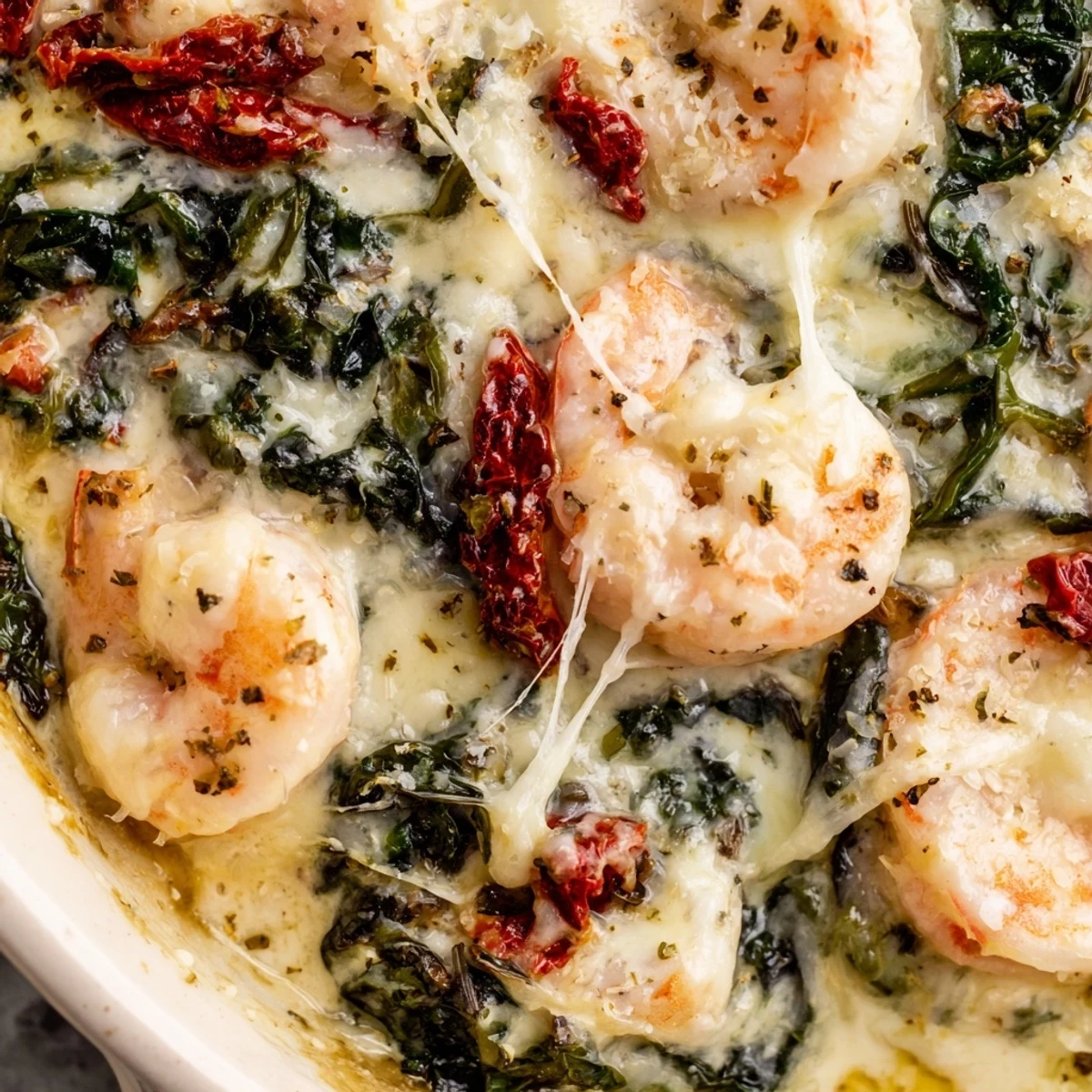 This satisfying Tuscan-inspired bake combines plump shrimp with a rich, creamy sauce featuring sun-dried tomatoes, fresh spinach, and aromatic Italian herbs. The dish comes together in under an hour—sauté the vegetables, simmer the cream sauce until thickened, coat the shrimp, then bake until the mozzarella turns golden and bubbly. Each serving delivers 33 grams of protein with just 7 grams of carbohydrates, making it ideal for anyone watching their carb intake without sacrificing flavor or comfort.