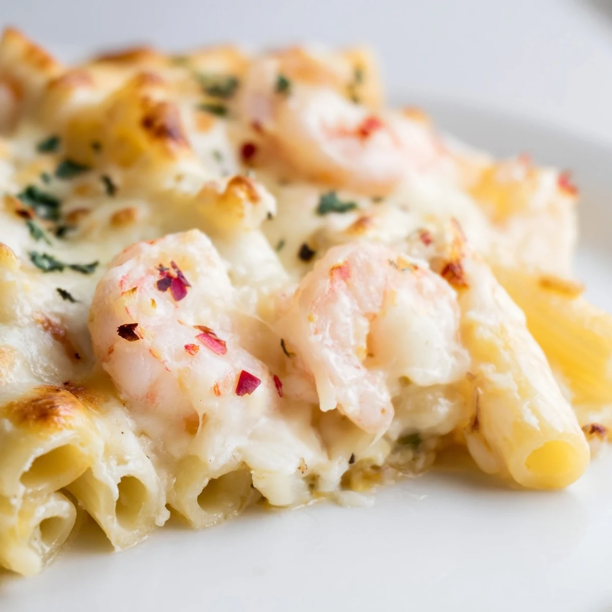 This comforting pasta bake combines plump shrimp with al dente penne swimming in a luxurious lemon-garlic cream sauce. The dish comes together in under an hour—first sautéing the shrimp with aromatic shallots and garlic in butter and olive oil, then deglazing the pan with white wine to build depth. A splash of heavy cream and fresh lemon creates that classic scampi brightness. After tossing everything with parmesan, the pasta gets crowned with mozzarella and baked until golden and bubbling. The result is a satisfying main that balances rich dairy with bright citrus and tender seafood.